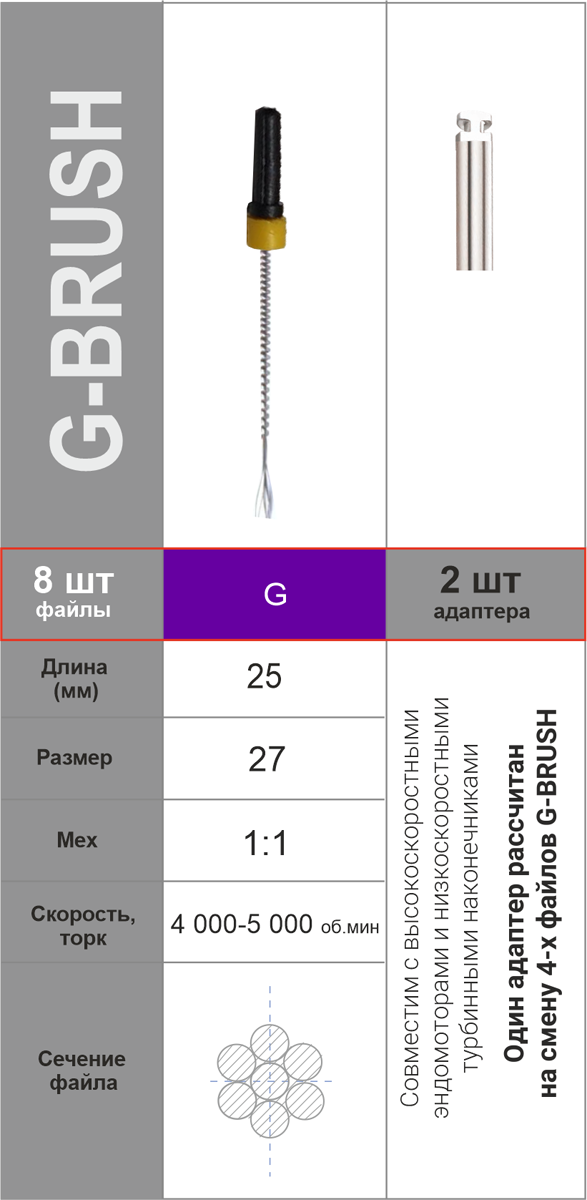 Основной целью G-BRUSH является активация гипохлорита и удаление биопленки, остатков дентинных опилок